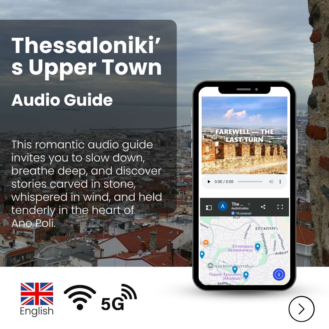 A poetic journey through Thessaloniki’s Upper Town — a walk designed for lovers, dreamers, and wanderers. This romantic audio guide invites you to slow down, breathe deep, and discover stories carved in stone, whispered in wind, and held tenderly in the heart of Ano Poli.